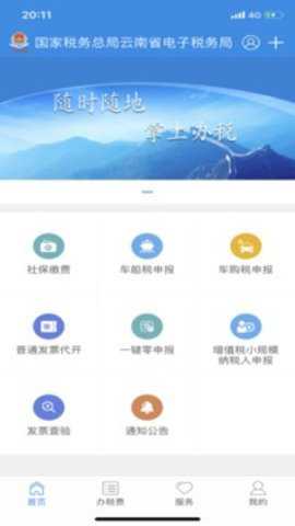 云南税务是一款由国家税务总局云南省税务局推出的线上税务服务软件,云南本地的用户可以通过软件在线把办理各种税务业务,包括社保费缴纳、各种购置税缴纳等。也支持发票代开,给用户最省心的使用体验。办理各种税务事宜轻松搞定,更省时间。