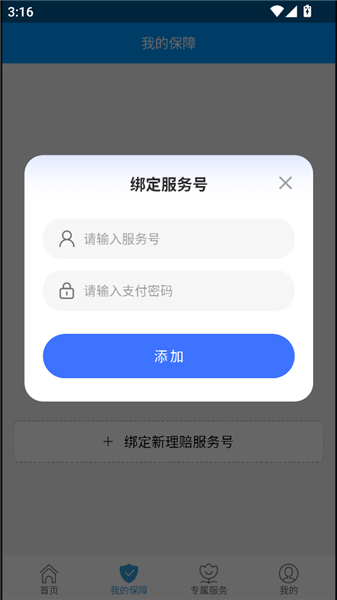 2、在我的保障界面下,我们可以绑定自己的服务号。