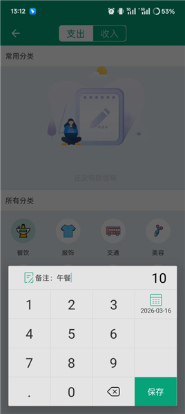 3、输入具体的开销数额和备注后保存。