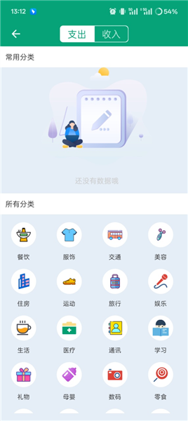 2、选择支出/收入和合适的类别。