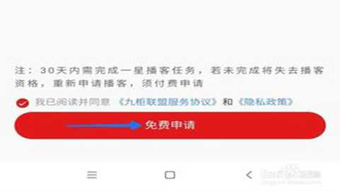 3实名认证和地址填写完成后,勾选协议,点击免费申请,输入密码,播客就申请成功了。