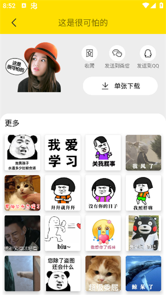 5、 一键分享导出:制作完成或下载后的表情可直接保存至相册,并能快速分享至各类通讯软件,方便与好友即时互动斗图。