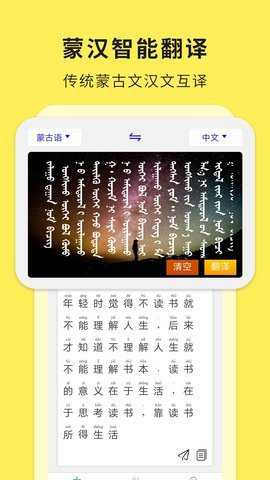 1.软件支持蒙古语和汉语之间的互相翻译。