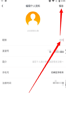 在编辑个人资料页面内,输入新的昵称后,点击‘保存’