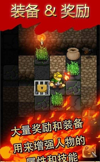 1、地牢探索环节紧张刺激,在随机生成的复杂迷宫中寻找珍贵宝藏,时刻警惕避开各种致命陷阱机关。