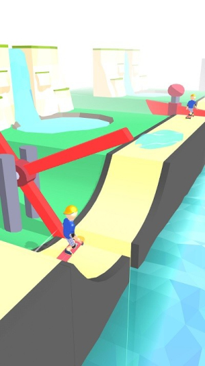 1、玩法滑板跑酷:控制角色在赛道滑行,通过跳跃、趴下应对路况,每完成一段滑行都满是愉悦感,适配休闲跑酷场景。