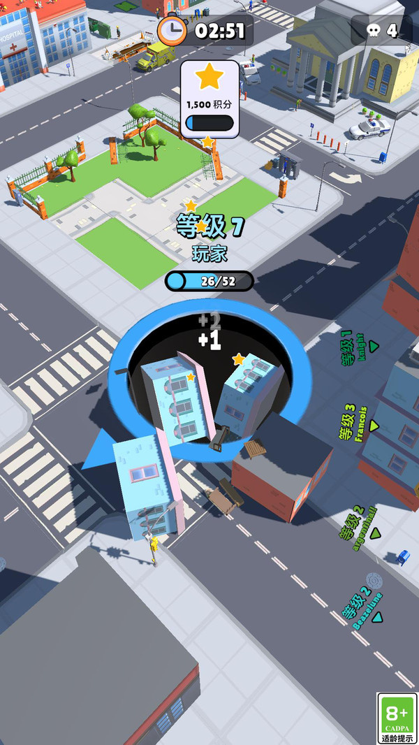 疯狂吸吸乐游戏是一款超解压的休闲游戏,你操控黑洞在城市里吸东西,从小车、路灯到大楼,越吸越大,看着街道被吸成空,特别过瘾,操作就滑动屏幕控制方向,别撞到比你大的物体,玩起来没压力,随时开一局,吞噬的快乐停不下来。