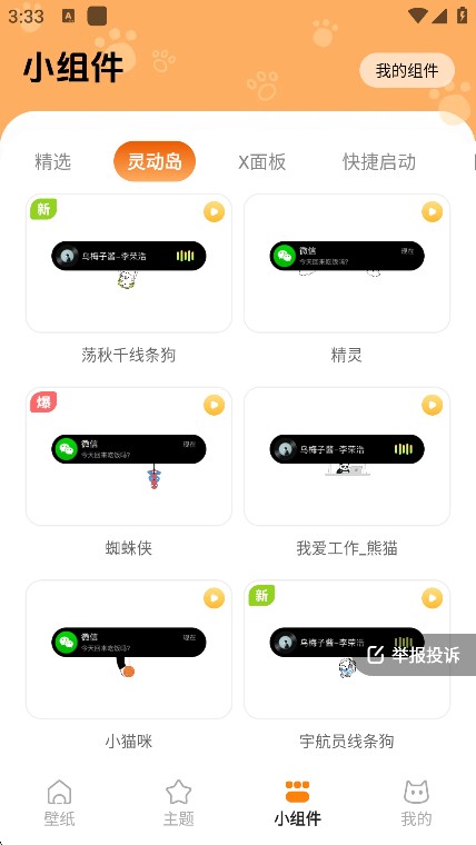 1、打开西西壁纸,点击底部 “小组件” 选项。