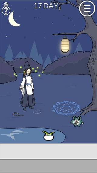 第十七关:将蚊香放在虚线圈里,然后用蜡烛点燃,再用吹泡泡的东西拖动到萤火虫那里,等萤火虫掉下去