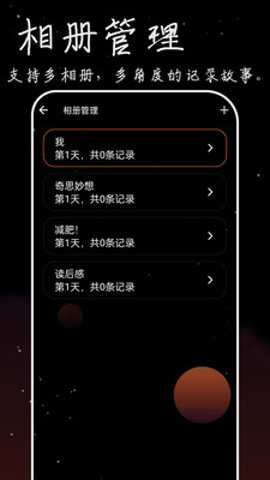2、该应用支持多相册,多角度的记录故事,让用户可以以不同的视角回顾过去的足迹。