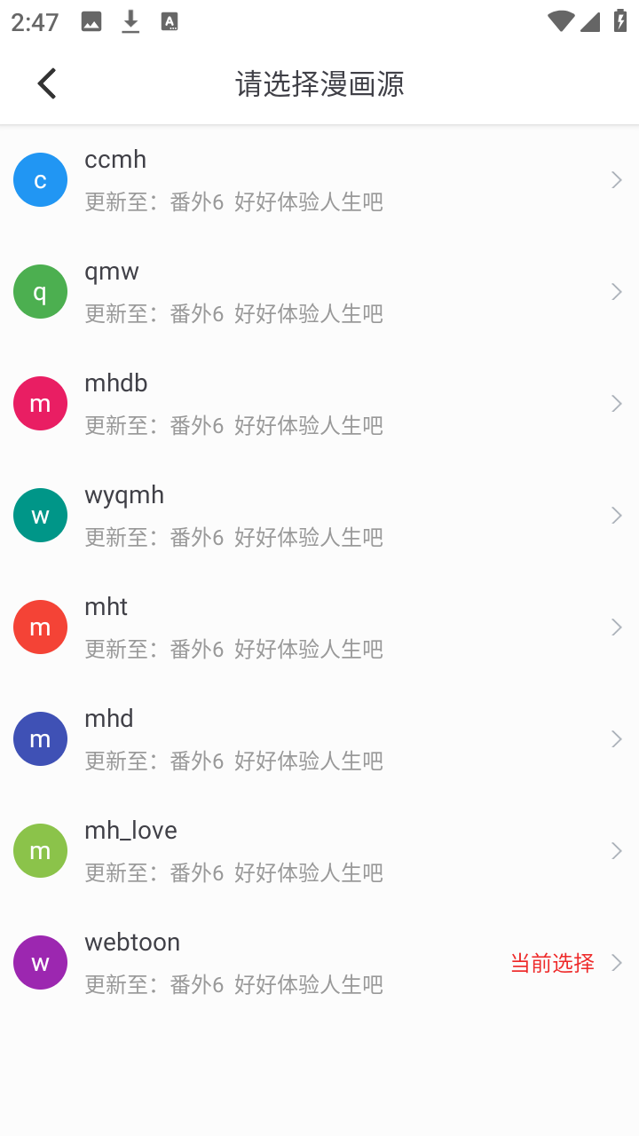 2、点一下就会出现提供的多个书源,点击即可切换。