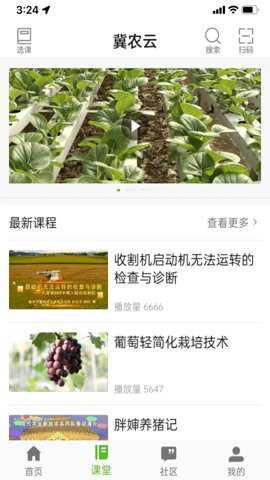 1、农业课堂是冀农云app最新版的一个功能模块,该模块会及时更新最新的农业知识和技术,用户可以自由进来学习。