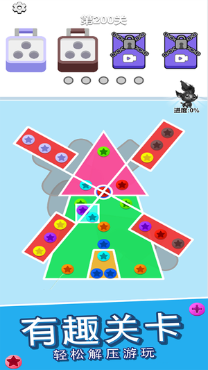 1、图案与螺丝同步消除,根据顺序与颜色合理安排操作流程,只有正确分类才能顺利完成消除任务避免失误。