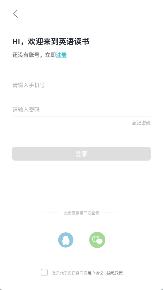 1、打开英语阅读app,使用手机号登录
