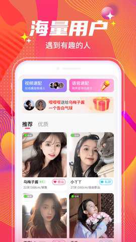 交友互动:通过聊天、发送礼物等方式与陌生人建立联系,拓展社交圈子,帮助用户快速脱单。