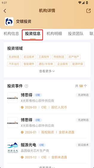 3、在投资信息中能看到投资事件记录