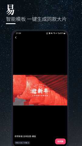 1、云美摄Pro的智能模板功能,可以让您只需导入素材,就能一键生成V高清编辑及高清存储,给您更好的视频体验。