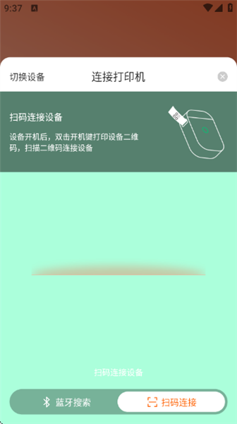确保打印机已接通电源并处于待机状态,同时在手机设置中开启蓝牙功能,返回APP点击【连接打印机】。