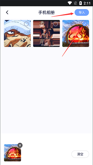 3、挑选需要倒放的视频,支持多段视频同时选择,选中后点击右上角【导入】。