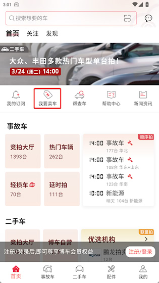 博车网拍卖是一款机动车交易平台,专为汽车维修、拆解企业和二手车商打造,提供公开透明的在线竞价服务,可随时随地浏览实拍车源,查看详细检测报告,参与多场次拍卖活动,让专业买家能高效获取一手车源,降低采购成本。