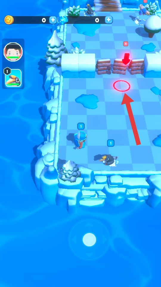 1、进入游戏场景,观察界面,按照【红箭头】指示方向,操控角色向【红圈】标识处移动探索。