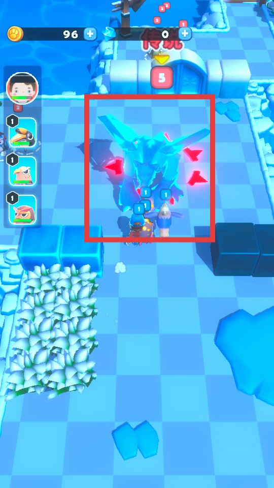 2、当遭遇如图中【红框】内的【蓝色巨龙BOSS】时,合理运用角色技能和已召唤的宠物,合力战斗。