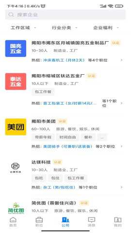 4、求职者还是企业,揭阳直聘都能为他们提供贴心的求职招聘服务,帮助他们快速找到满意的工作。