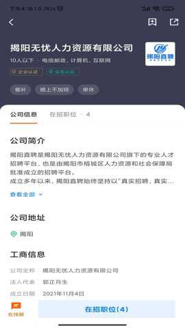 4、求职者还是企业,都可以在揭阳直聘找到合适的工作或合适的人才。