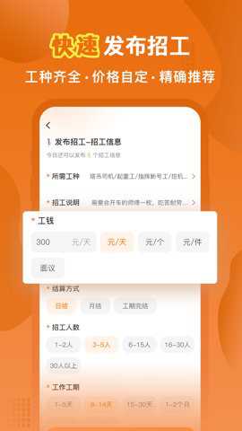 1、在这里可以根据自己的需求,灵活地设定工种和价格,系统会精确推荐符合要求的工人。