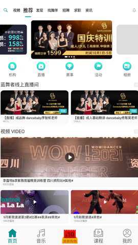 1、除此之外,蓝舞者App还提供了最热门的赛事新闻、最热门的训练营以及舞蹈界的八卦内容,让用户可以了解舞蹈圈的最新动态。