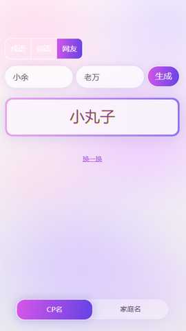 1、值得一提的是,CP名自动生成器不仅限于情侣名字的生成,用户还可以利用该工具为自己的社交账户取名。