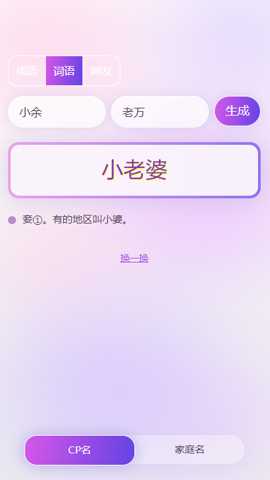 用户只需简单输入一些关键词,如成语、词语或是自己和伴侣的名字,软件就会迅速生成一系列匹配的CP名字,可以根据自己的喜好,选择合适的名字进行使用,甚至可以将生成的名字分享给朋友,增加互动乐趣,还可以通过标签分类的方式,快速找到自己感兴趣的名字类型。