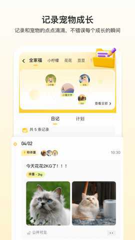 3、附近有喵还具备记录宠物健康情况的系统,用户只需一键操作,即可呈现宠物的健康报告。