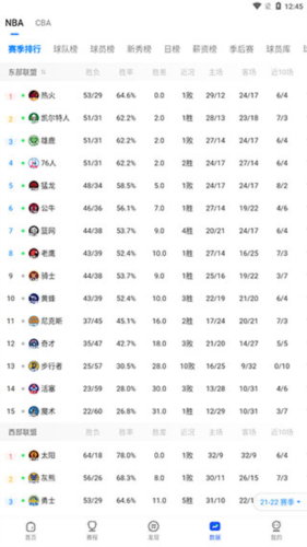 4、当你打开【数据】页面,你就可以查看各支队伍的历史数据。