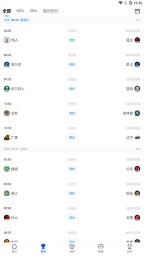 2、切换到【赛程】页之后,就能预约比赛直播或者收看比赛回放。