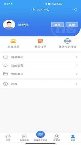 1、打开江苏医保云APP完成注册登录,点击“我要办-家庭共济”功能模块;
