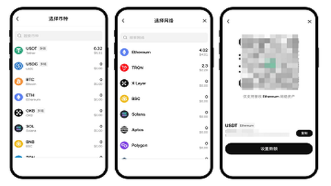 点击【接收】,搜索想要交易的币种,进入详情页获取收款地址。打开其他交易所或钱包,输入复制的收款地址或直接扫描二维码进行转账。