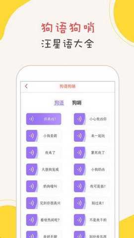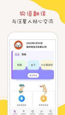 1、只需要按下按钮,说出自己的消息,然后通过狗狗语翻译器分析狗语,就能够秒懂狗狗的内心。
