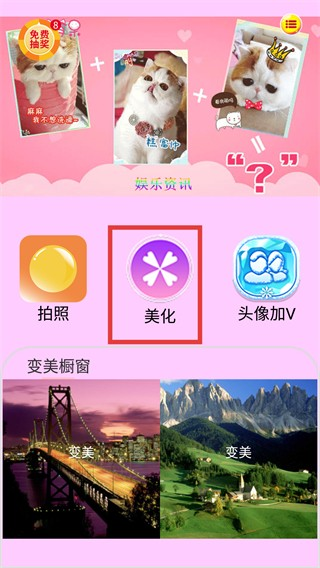 1、进入软件首页,找到并点击【美化】功能按钮,进入图片选择环节,为后续编辑做好准备。