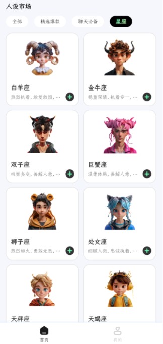 1、启动软件后,界面会呈现多种人设设定,可直观浏览选择。