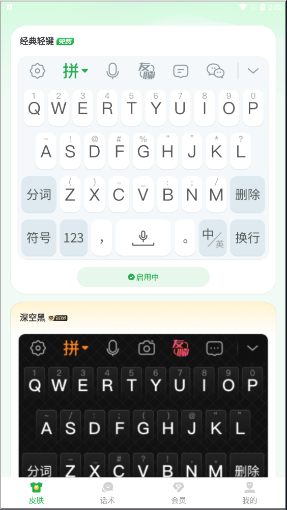 3、支持个性化设置,提供多款精美皮肤,可自由切换风格,让输入更具趣味性。