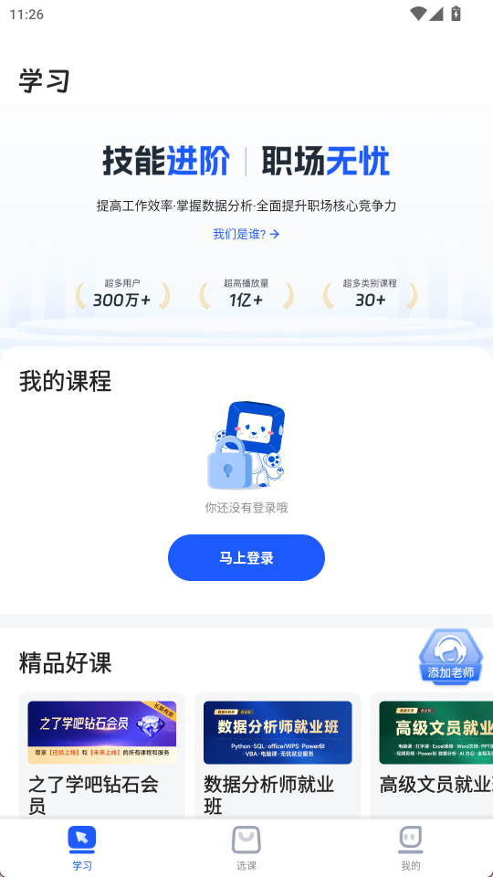 之了学吧是一款面向职场人士的技能提升应用,汇聚办公自动化、程序设计与视觉创作等课程,采用交互式课堂模式,将枯燥知识转化为趣味闯关体验,在轻松氛围中掌握核心技能,从容应对职场挑战,实现自我价值跃升。