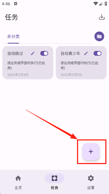 6、点击页面右下角的“加号”按钮,新建一个自动化任务并进行设置。