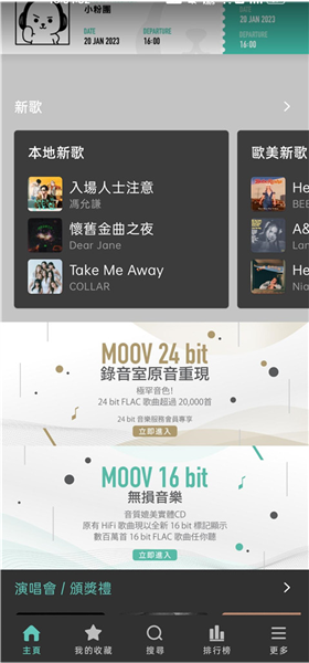 MOOV是一款音乐串流应用,汇聚全球海量正版曲库,粤语歌曲资源全面,提供母带级无损音质,还原录音室现场听感,带来极致听觉享受。独家上线演唱会高清视频与音乐现场直播,身临其境感受舞台魅力。
