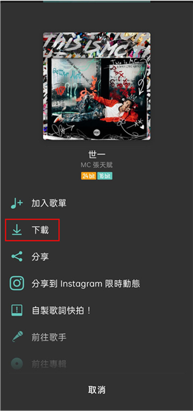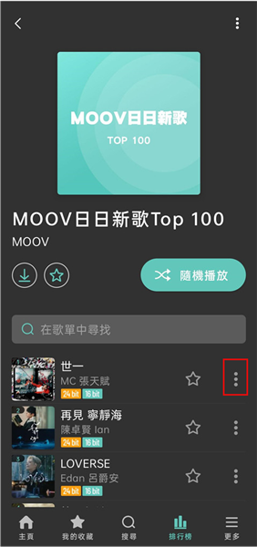 3、选择一首歌点击右边三点功能按钮