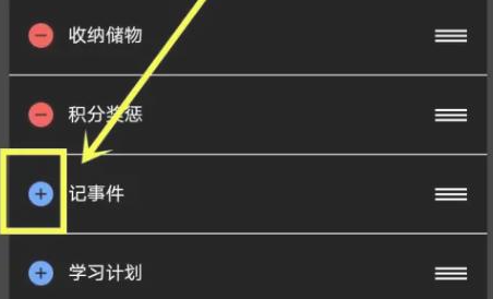 3、在功能模块页面中,选中【记事件】功能,点击右侧【+】号即可开启使用。