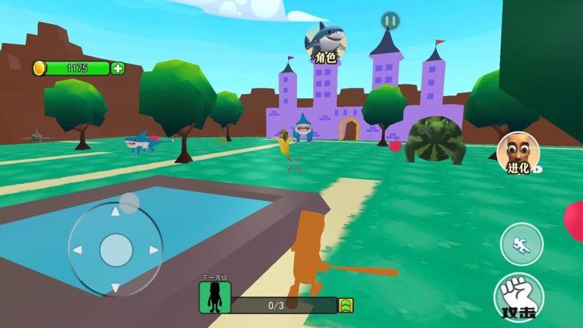 1、玩家操控木桶人穿梭于场景中,不断吞噬玩偶、道具。