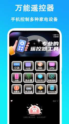 2、使用万能遥控家电,您可以摆脱繁琐的遥控器,将所有的遥控器功能集中在手机上。