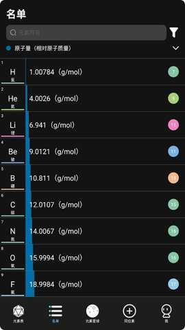 3、还提供了原子量名单、其他非金属、同位素添加服务,帮助用户掌握相关数据属性,轻松查询了解。