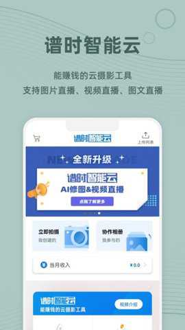 2、谱时智能云它不仅可以帮助摄影师实现图片直播,还能提供人工智能修图和品控功能是一款实用便捷的摄影和工具app。